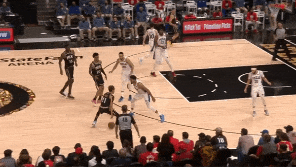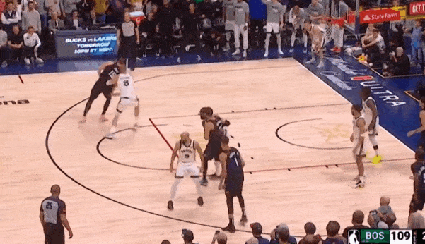 随着磨合与经验的累积,我会期待看到一些祖巴茨短下顺分空切科林斯、祖巴茨低位分空切科林斯、科林斯突分内传内祖巴茨…配合,下面这个回合是一个好的开始,科林斯突分空切祖巴茨,后者成功制造犯规。