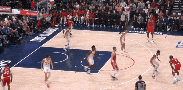 同样的面对穆雷Close out定点下球进攻,突破过程中没能摆脱穆雷,在油漆区停球想要对抗创造投篮空间,被吹进攻犯规。