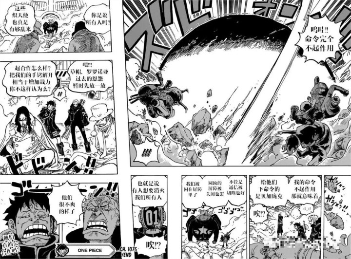 在混乱中,路飞与索隆及时赶到战场。索隆斩击敌人,贝加庞克的分身试图控制局势,但系统已彻底崩溃。最终,路飞和索隆的冲入为局势带来转机,但“是谁在操控炽天使?”仍是悬念