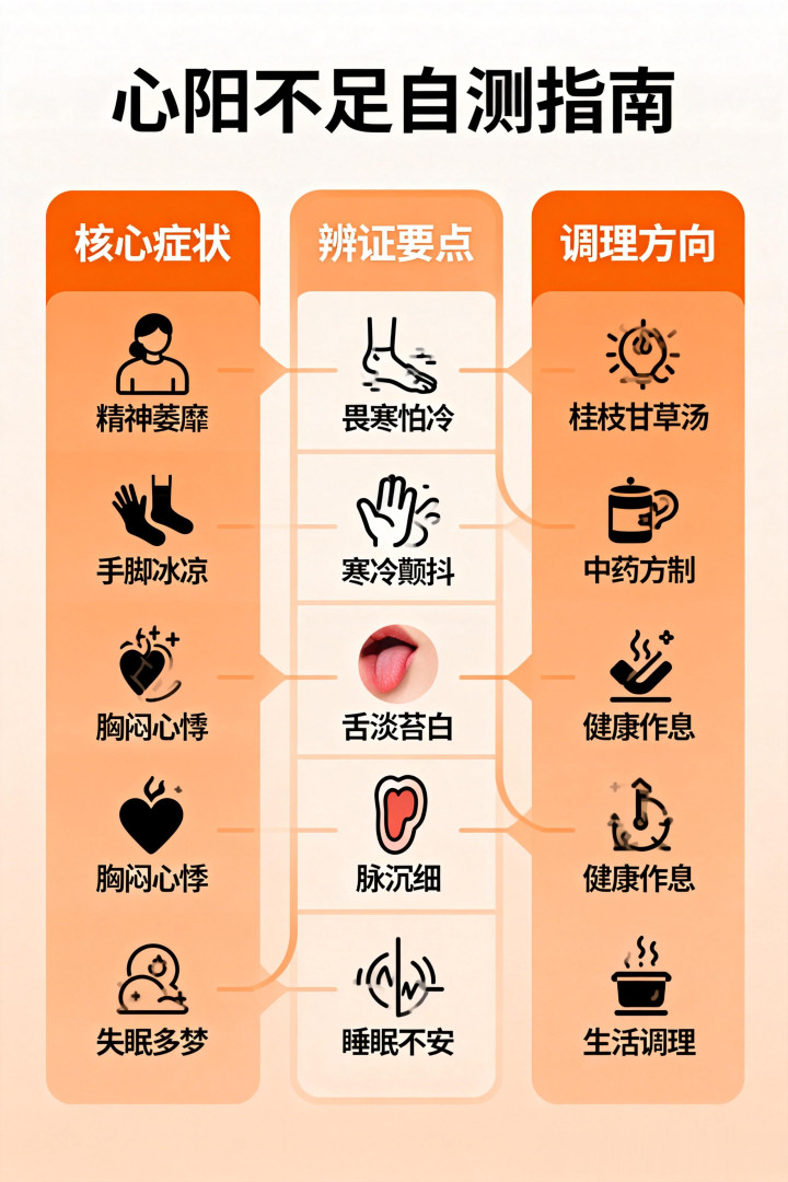 《黄帝内经》中说:“阳气者,若天与日,失其所,则折寿而不彰。”心阳,就是我们生命的火种。当这团火不够旺盛时,身体就会出现一系列的问题: